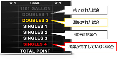 各セット別の詳細ゲームデータが確認できます。急な停電等でオフラインになった場合、スコアボード画面を見て